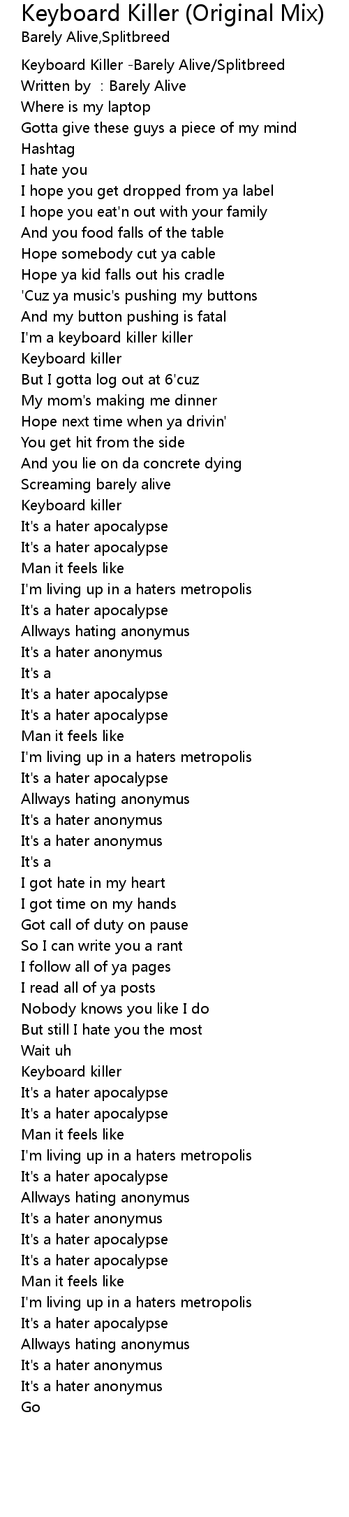 | [00:00.385] | Keyboard Killer Barely Alive Splitbreed |