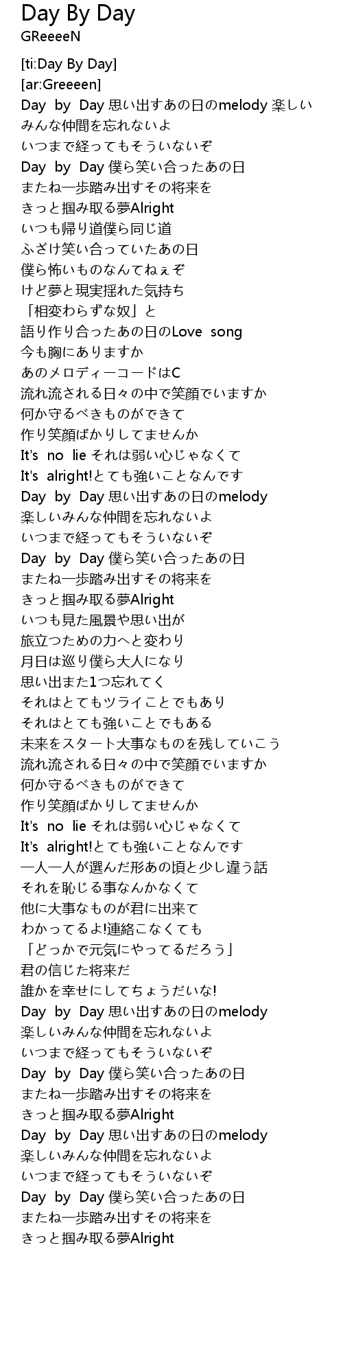 | [00:20.09] | Day by Day 思い出すあの日のmelody 楽しい |