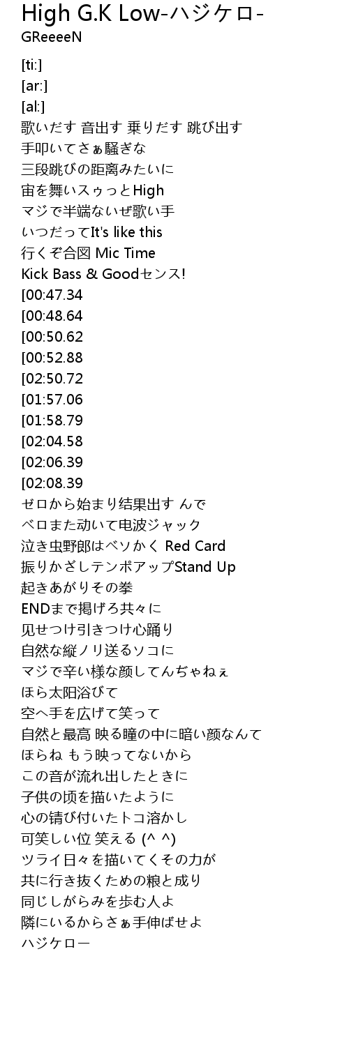 | [00:45.02] | Kick Bass & Goodセンス! |