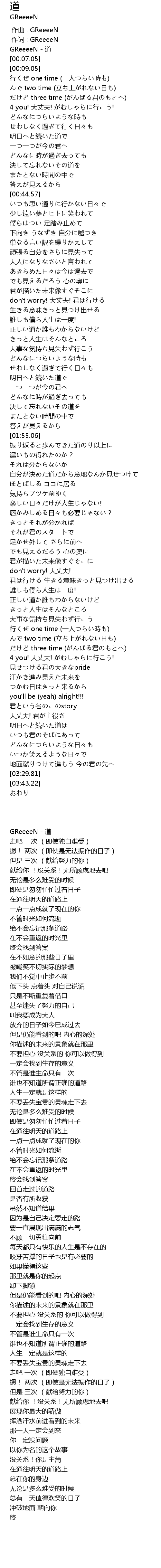 | [00:11.05] | 行くぜ one time (一人つらい時も) |