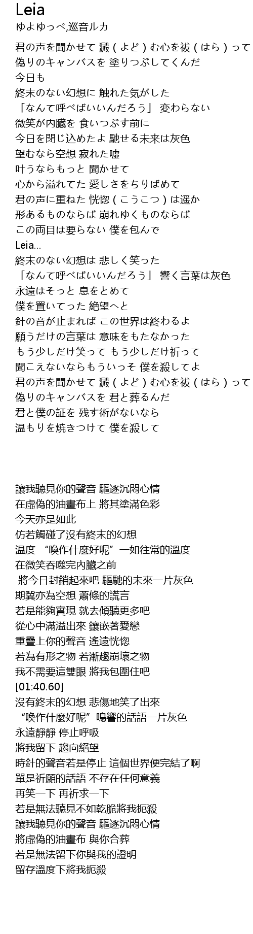 | [01:40.60] | Leia... |