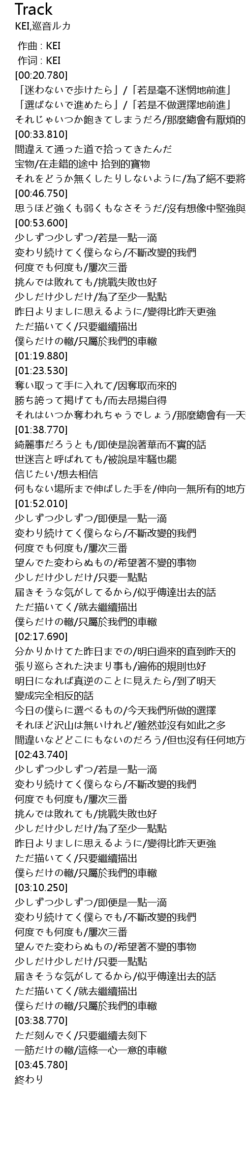 | [03:05.980] | 僕らだけの轍/只屬於我們的車轍 |