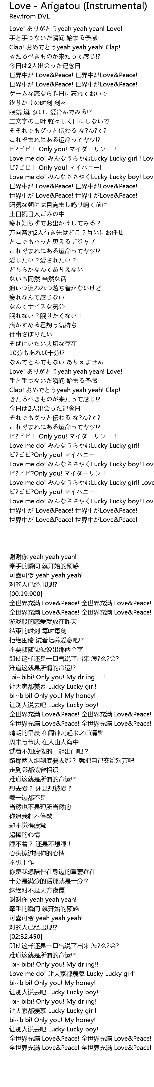 | [03:31.840] | 世界中が Love&Peace! 世界中がLove&Peace! |