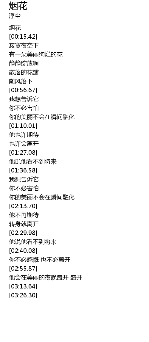 | [00:36.01] | 有一朵美丽绚烂的花 |