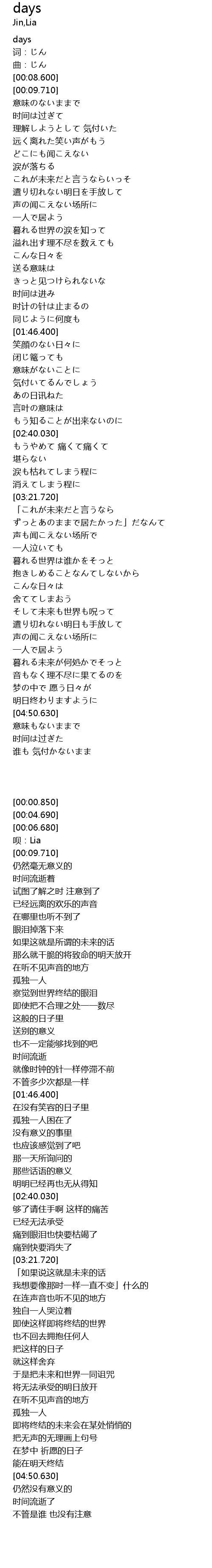 | [00:06.680] | 曲:じん |