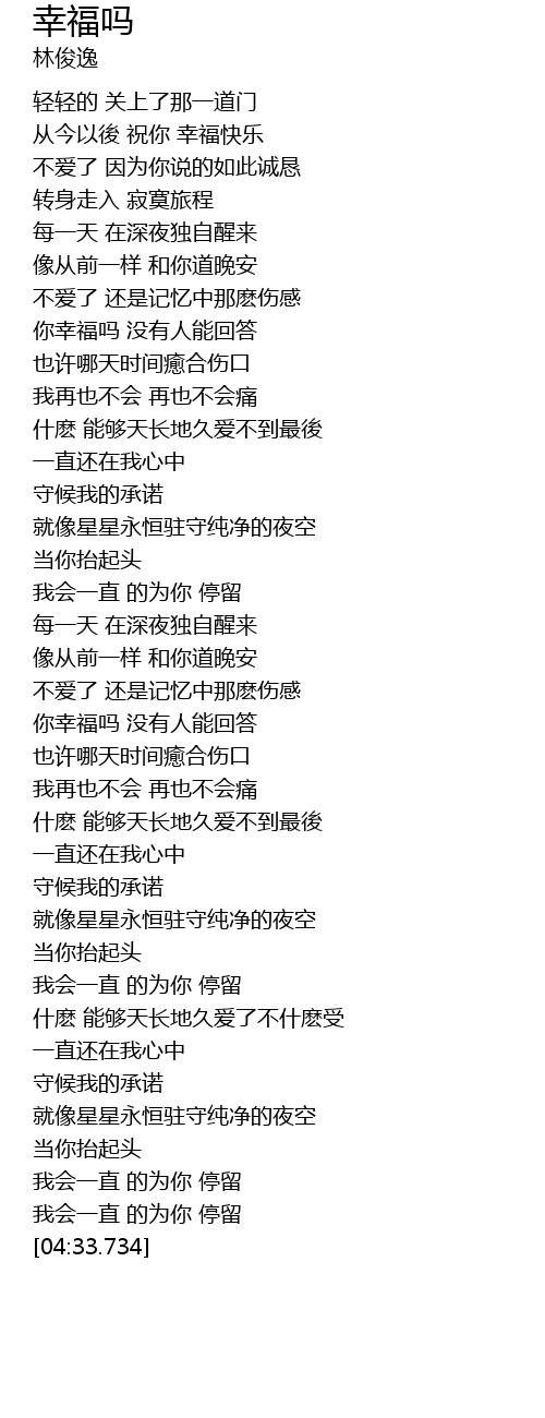 | [00:29.187] | cong jin yi hou zhu ni xing fu kuai le |