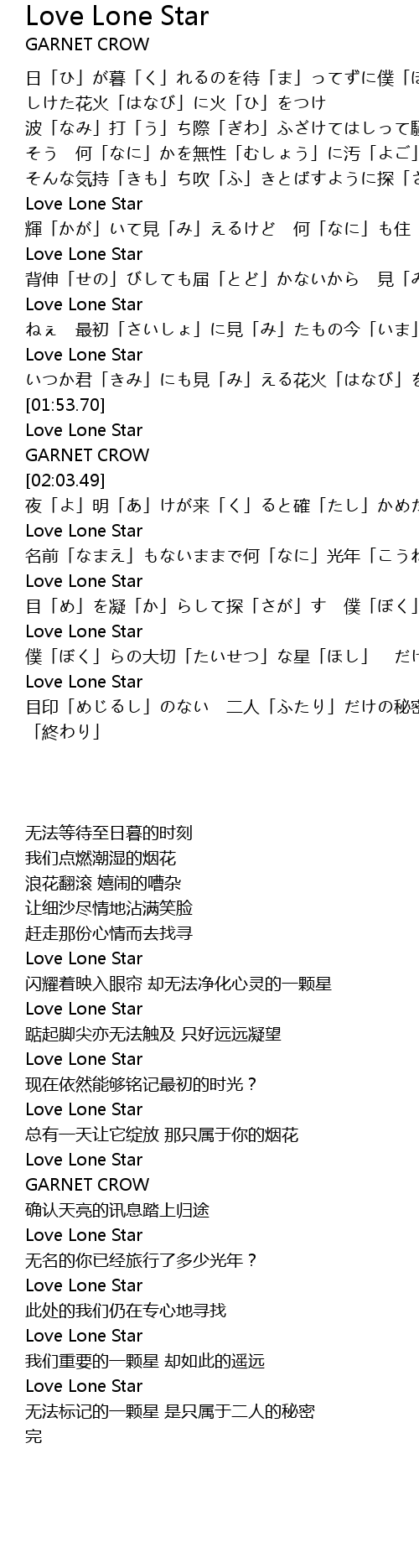 | [02:33.99] | Love Lone Star |