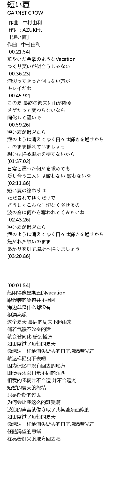| [00:01.54] | 「短い夏」 |
