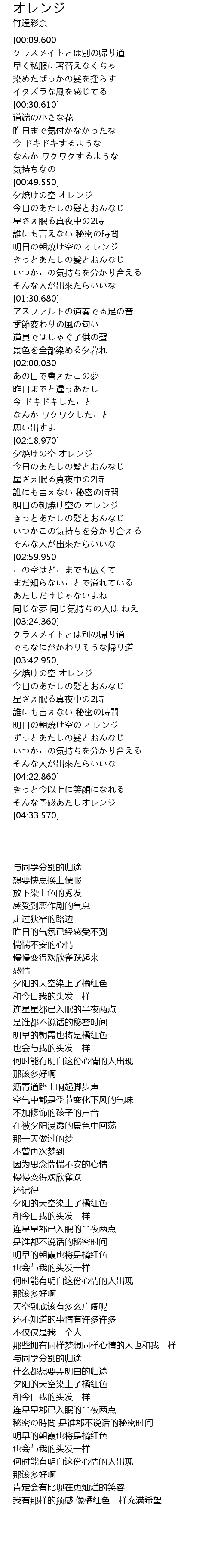 | [02:40.720] | 明日の朝焼け空の オレンジ |
