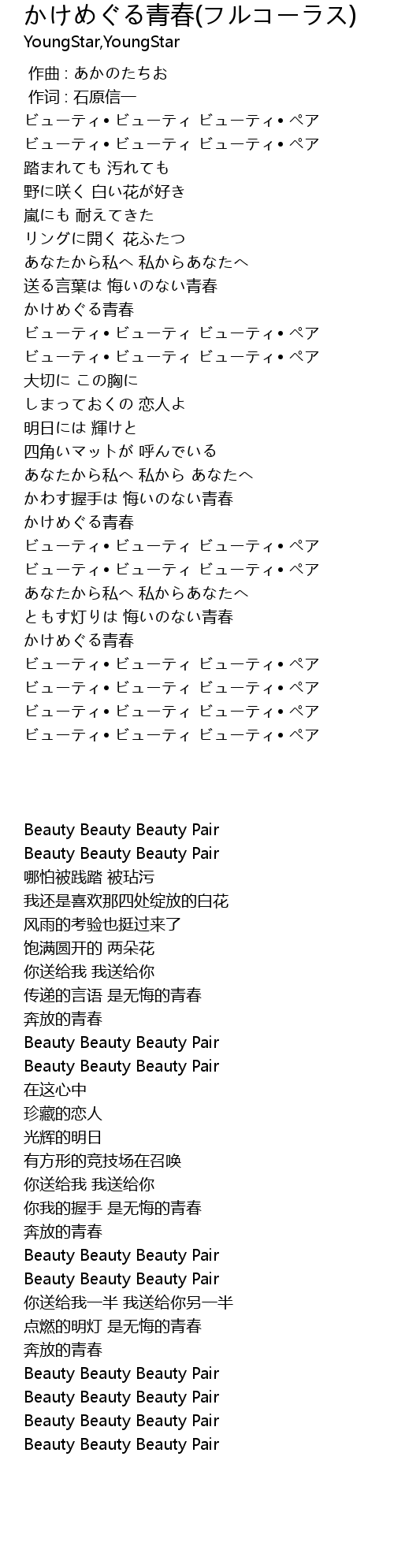 | [02:54.66] | ビューティ• ビューティ ビューティ• ペア |