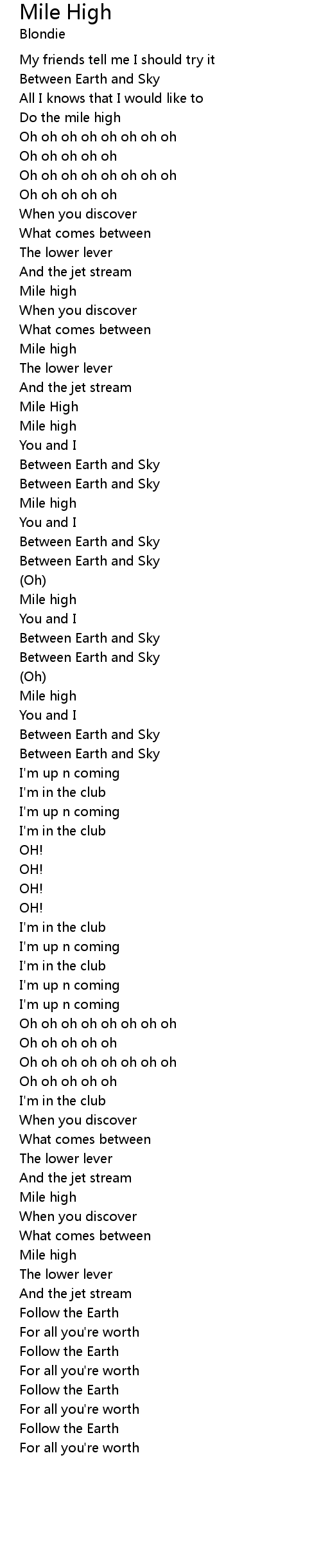 | Song | Mile High |