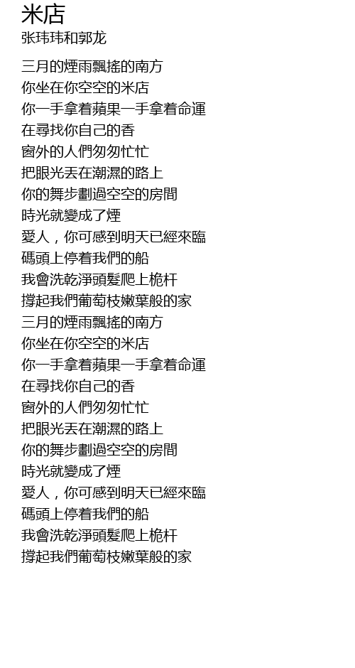 | [02:26.477] | 你坐在你空空的米店 |