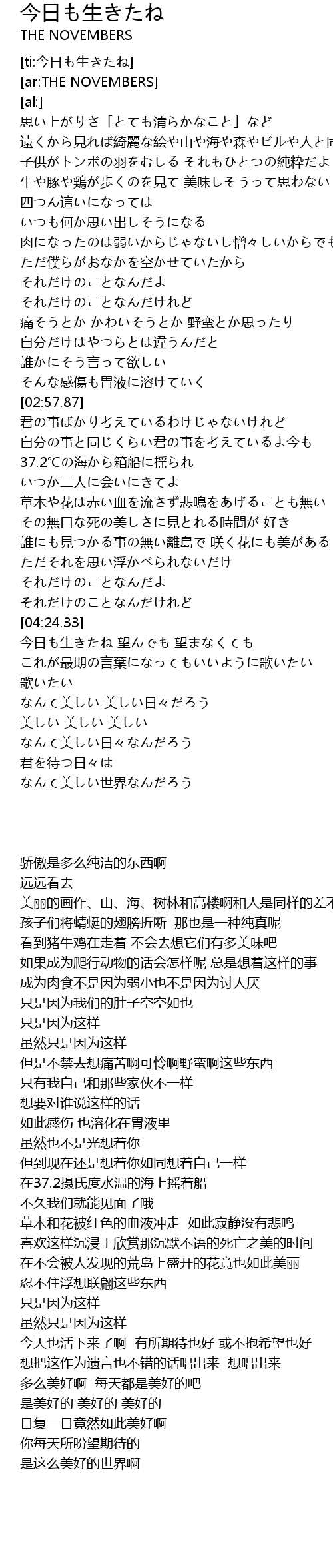 | [04:27.91] | 今日も生きたね 望んでも 望まなくても |