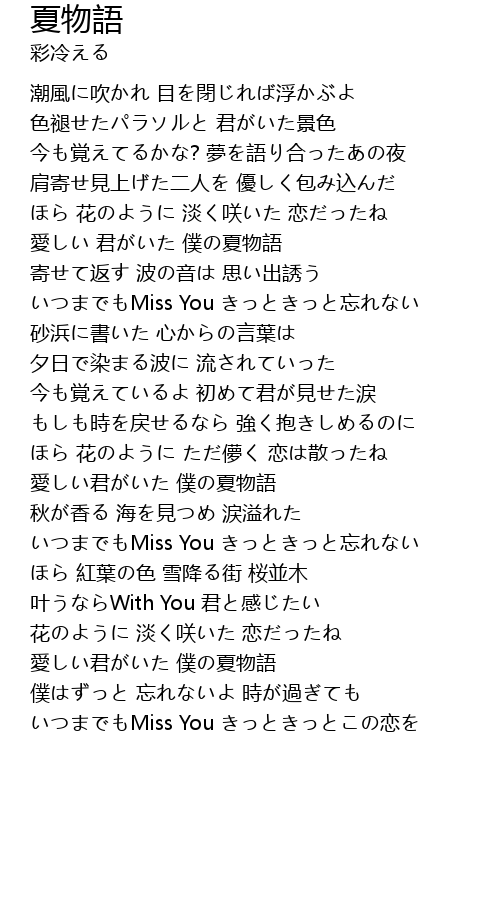 | ほら 花のように 淡く咲いた 恋だったね | |