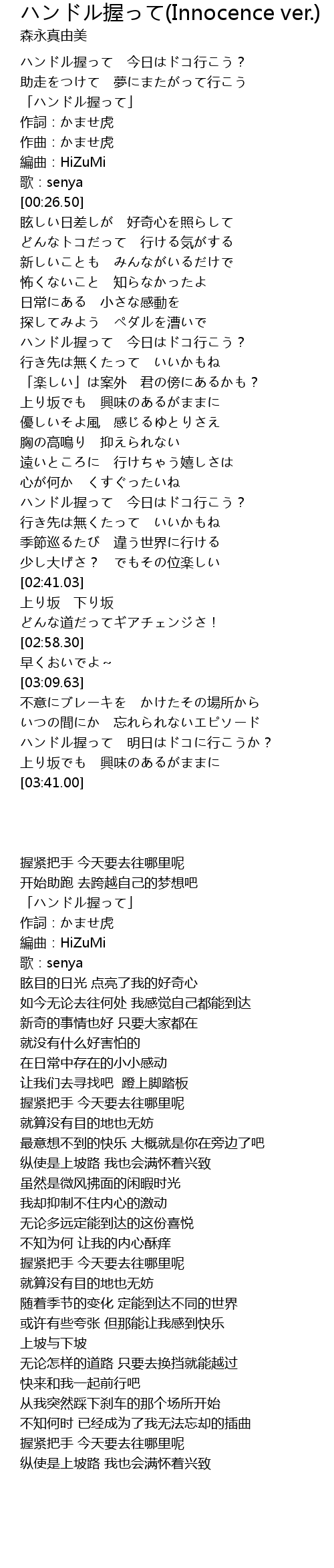 | [03:26.03] | ハンドル握って 明日はドコに行こうか? |