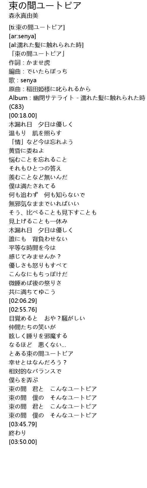 | [03:38.95] | 束の間 僕の そんなユートピア |