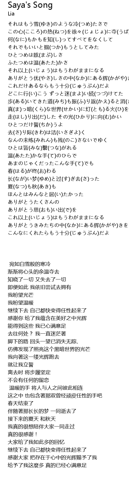 | Song | Saya's Song |