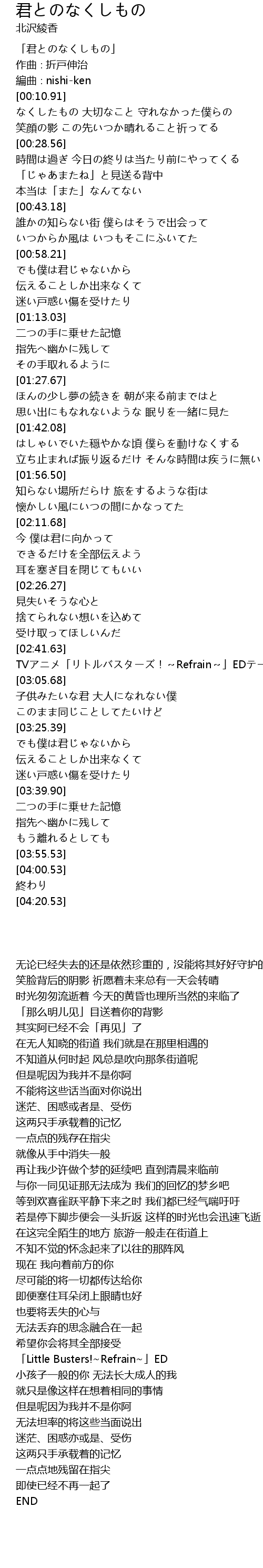 | [02:56.68] | TVアニメ「リトルバスターズ!~Refrain~」EDテーマ |