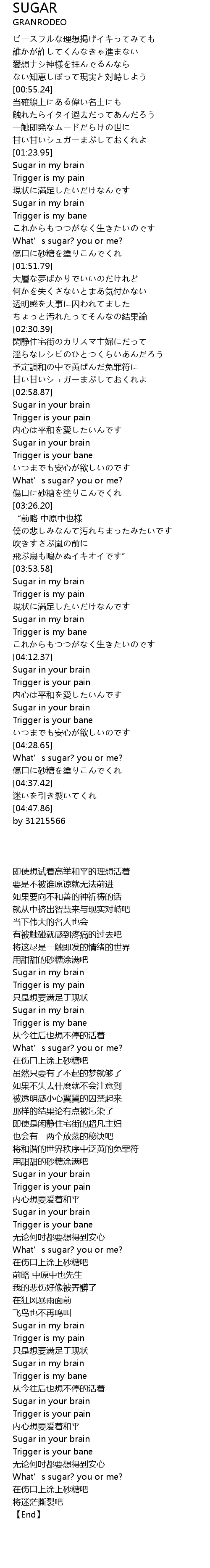 | [02:59.32] | Sugar in your brain |
