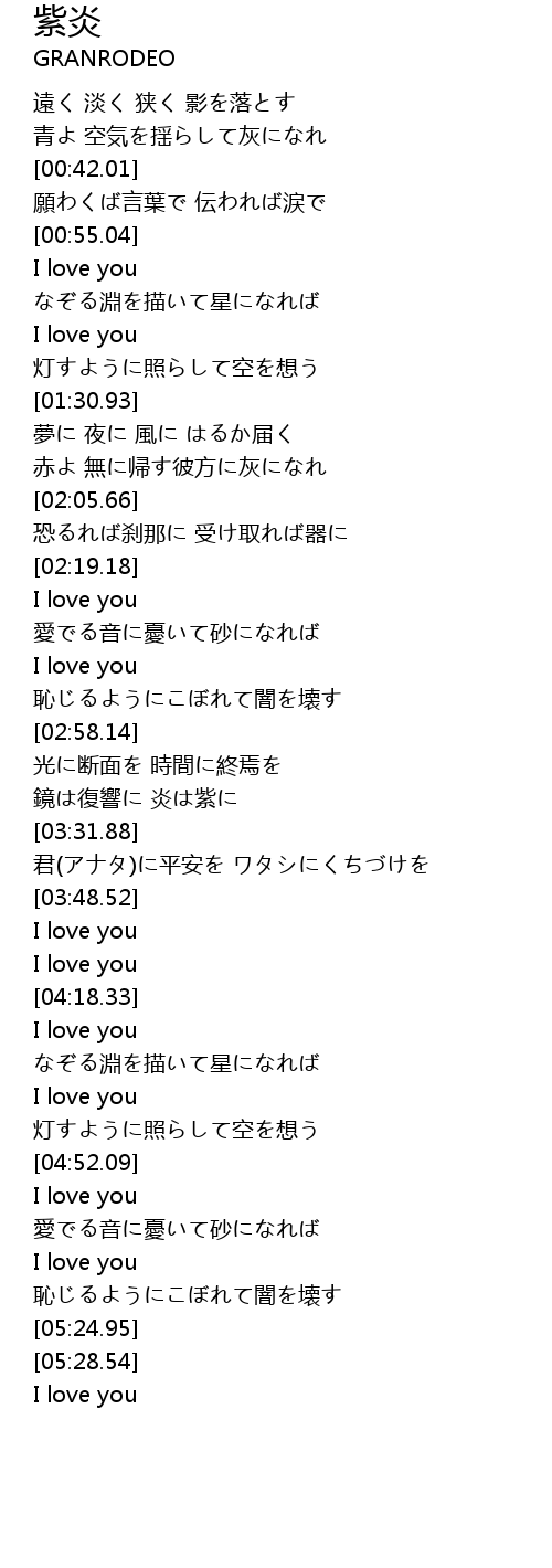 | [03:32.74] | 君(アナタ)に平安を ワタシにくちづけを |