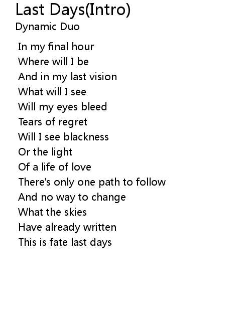 | Song | Last Days(Intro) |