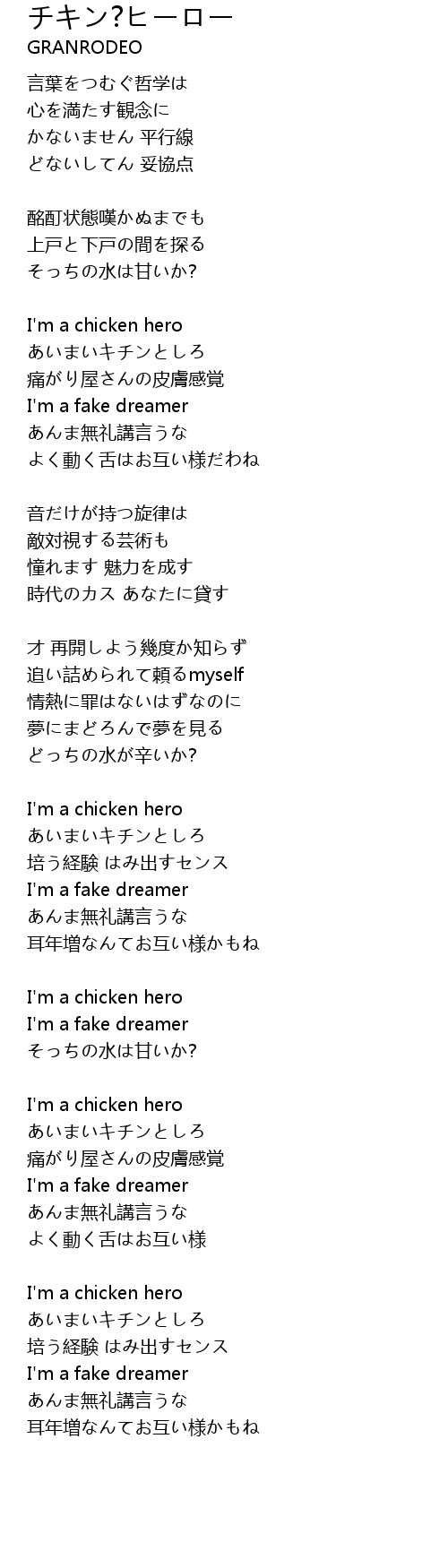 | Song | チキン?ヒーロー |