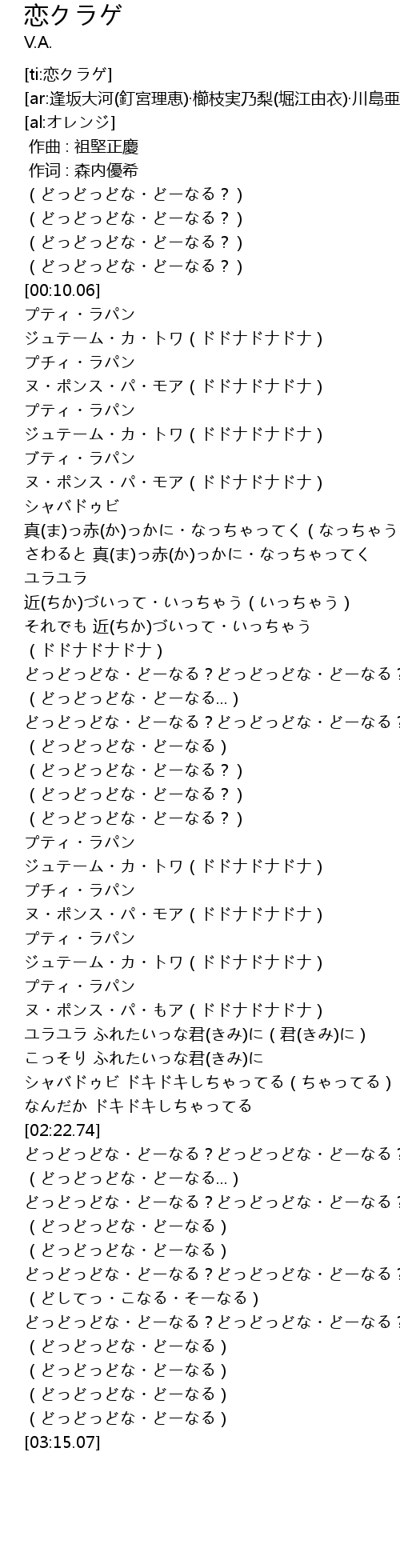 | [02:34.71] | どっどっどな・どーなる?どっどっどな・どーなる?あ~あ~あ~あ~ |