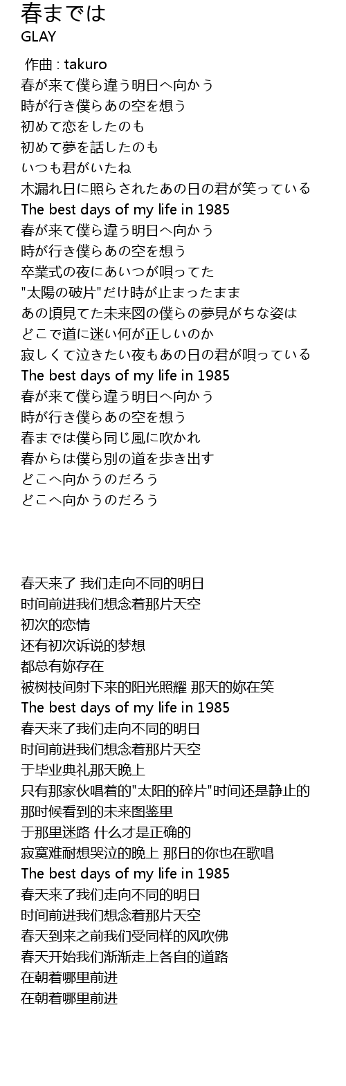 | [00:04.870] | 春が来て僕ら違う明日へ向かう |