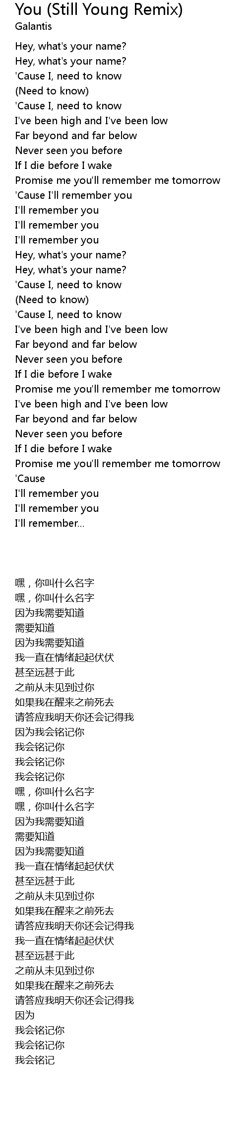Promise me you'll remember me tomorrow |