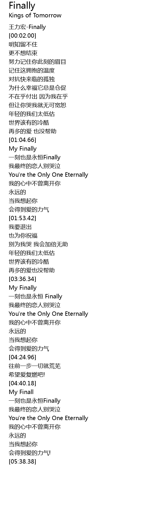 | [00:00.00] | 王力宏-Finally |