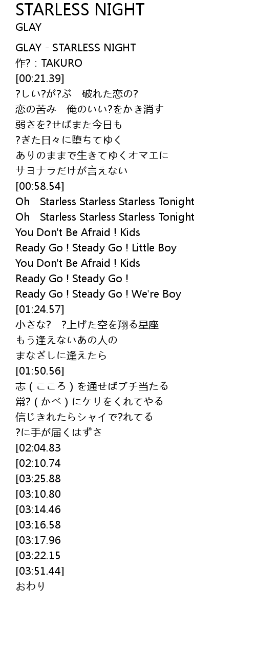 | [00:00.00] | GLAY STARLESS NIGHT |