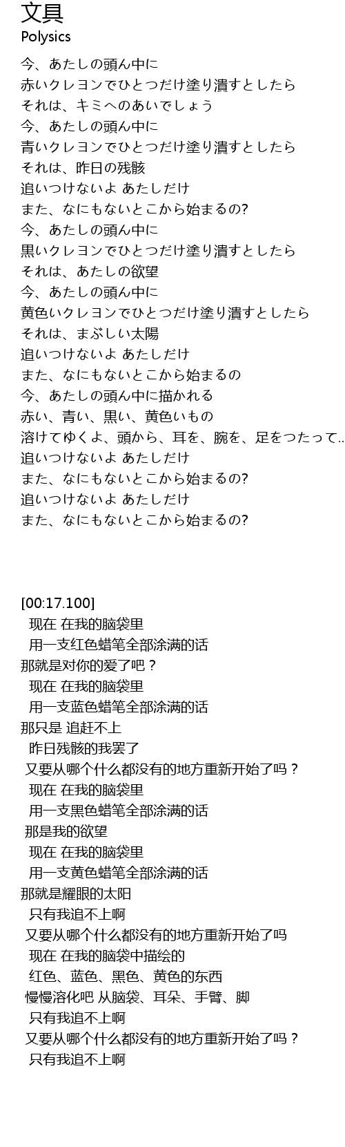 | [00:19.586] | 赤いクレヨンでひとつだけ塗り潰すとしたら |