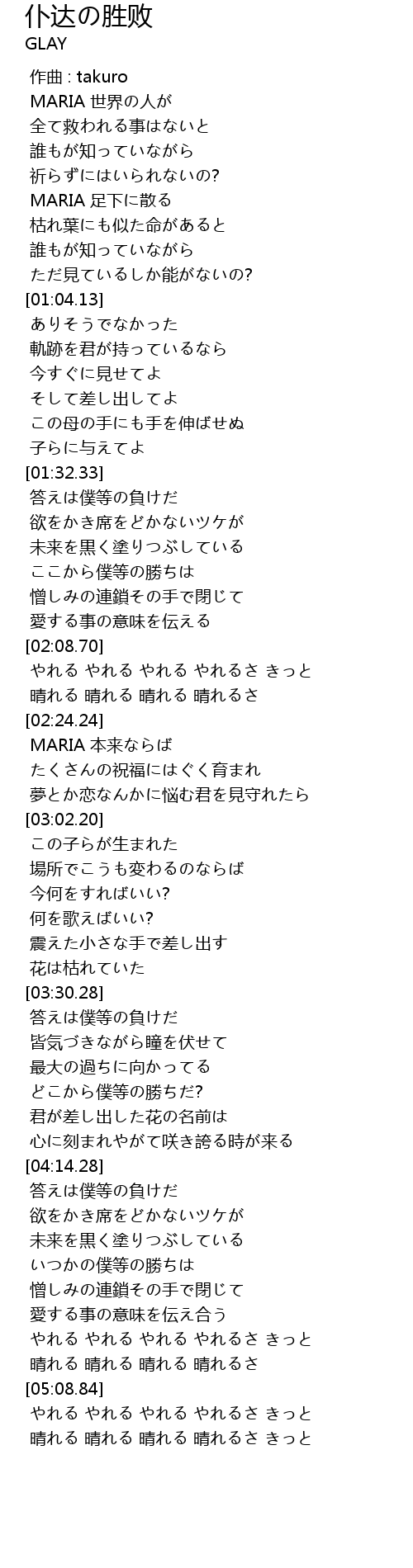 | [04:16.28] | 答えは僕等の負けだ |