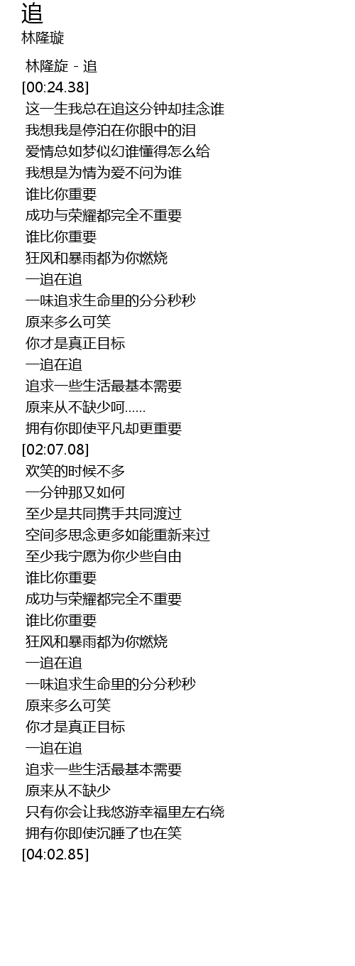 | [00:36.57] | 这一生我总在追这分钟却挂念谁 |