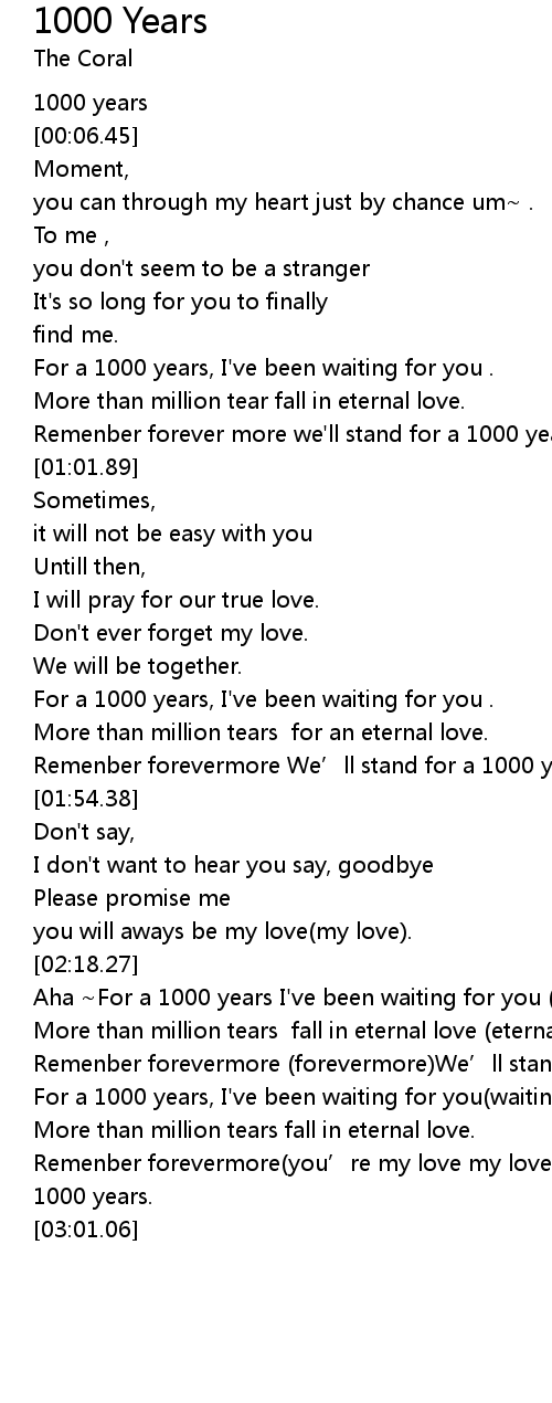 | [00:43.03] | For a 1000 years, I've been waiting for you . |