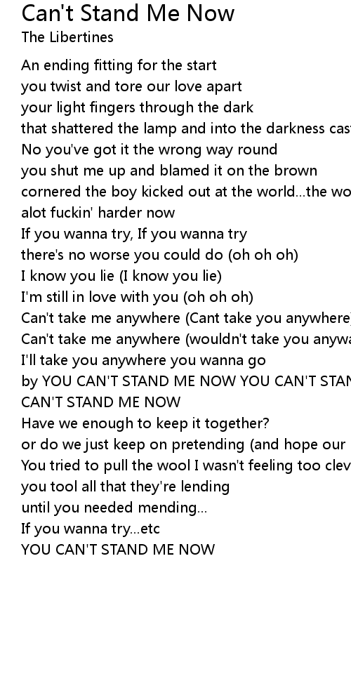 by YOU CAN'T STAND ME NOW YOU CAN'T STAND ME NOW CAN'T STAND ME NOW |