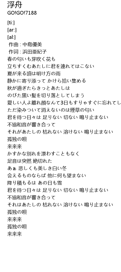 | [00:01.000] | 作词 : 浜田亜紀子 |