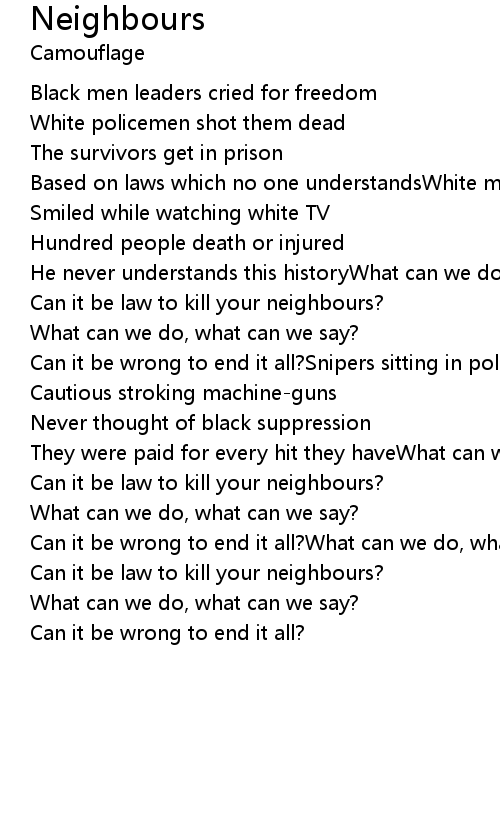 Can it be law to kill your neighbours? |
