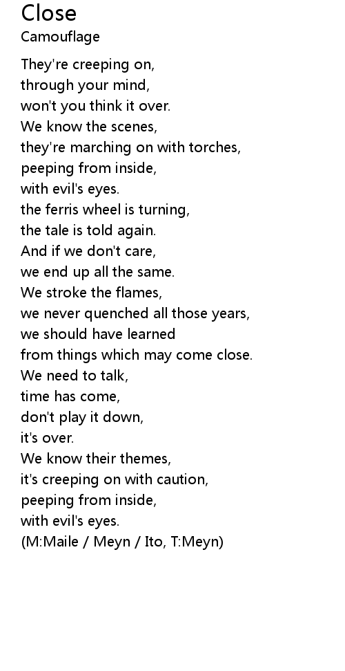 They're creeping on, |