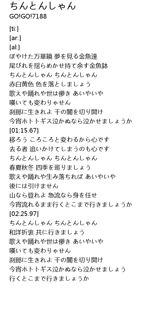 | [01:38.78] | ちんとんしゃん ちんとんしゃん |