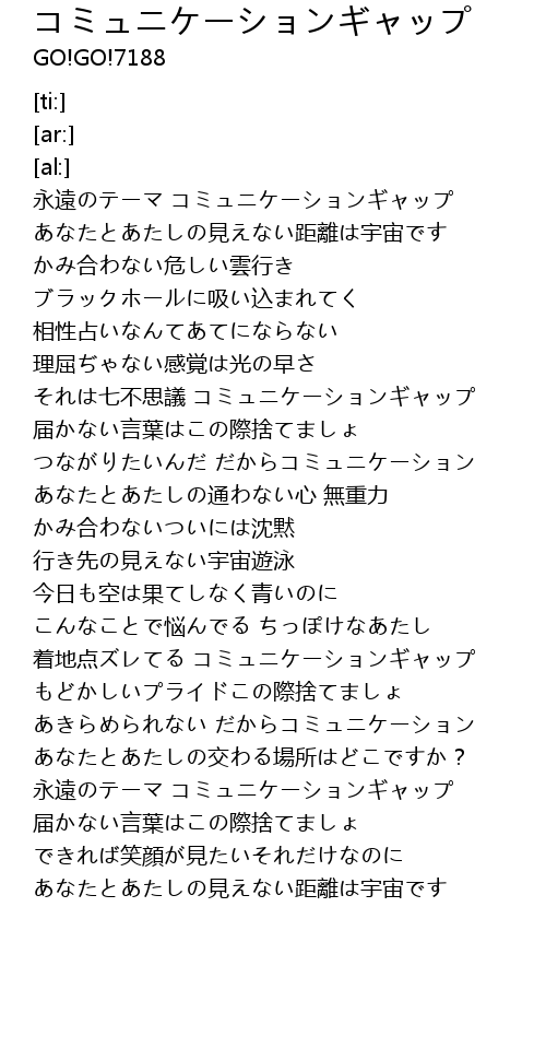 | [02:38.92] | 永遠のテーマ コミュニケーションギャップ |