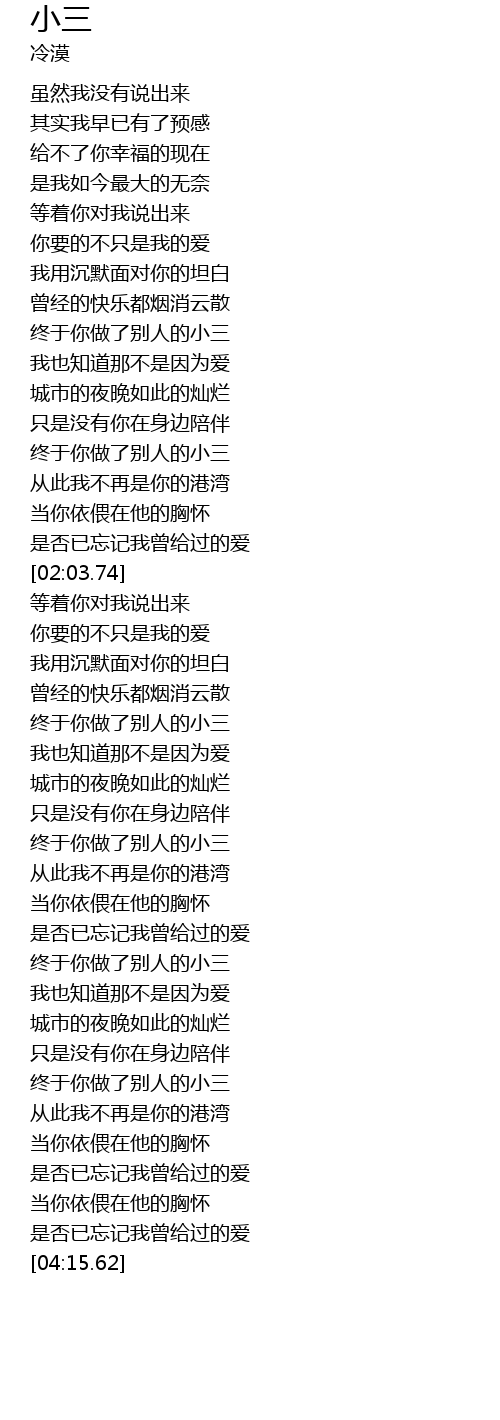 | [03:03.65] | 终于你做了别人的小三 |