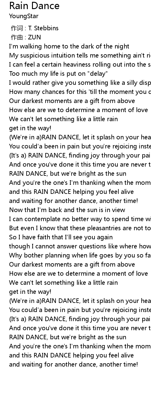 | [00:58.449] | (It's a) RAIN DANCE, finding joy through your pain |