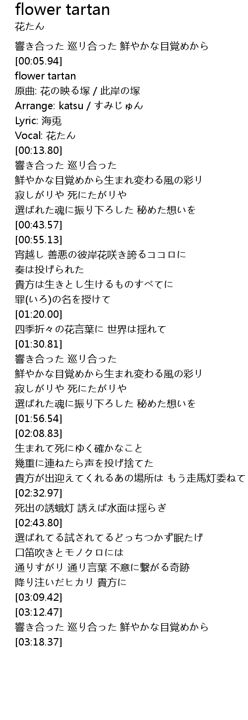 | [00:07.36] | 原曲: 花の映る塚 / 此岸の塚 |