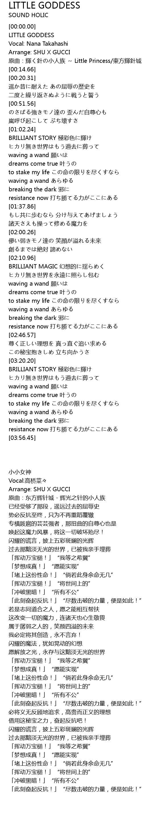 | [00:11.75] | 原曲:輝く針の小人族 ~ Little Princess/東方輝針城 |
