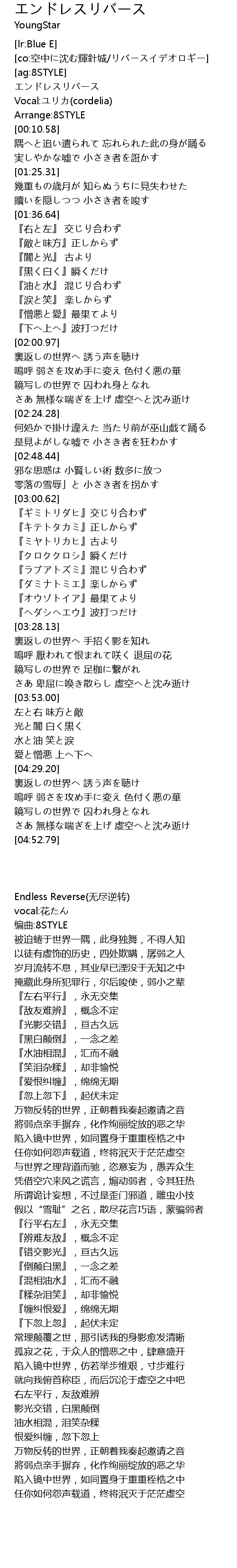 | [00:04.28] | エンドレスリバース |