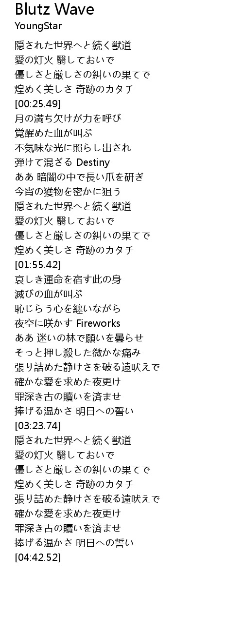 | [04:10.88] | 煌めく美しさ 奇跡のカタチ |