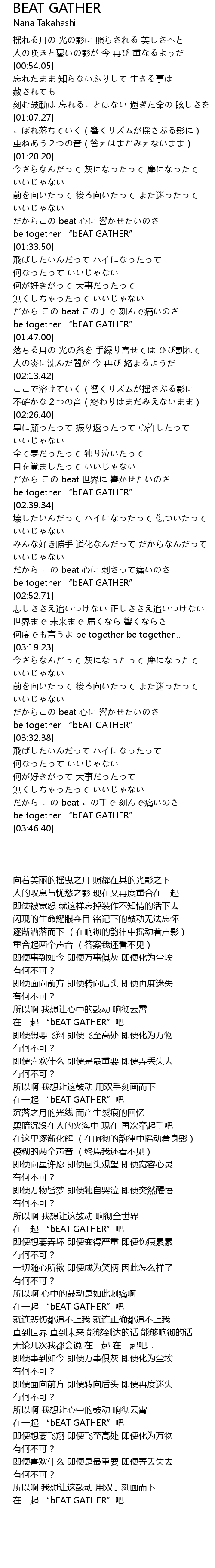 | [03:29.47] | be together " bEAT GATHER" |