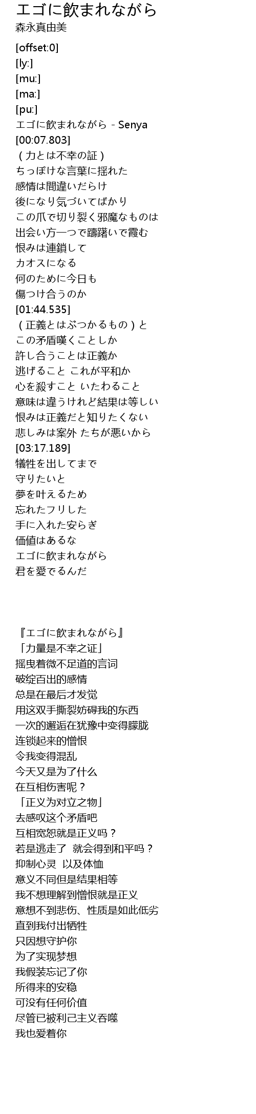 | [00:01.941] | エゴに飲まれながら - Senya |