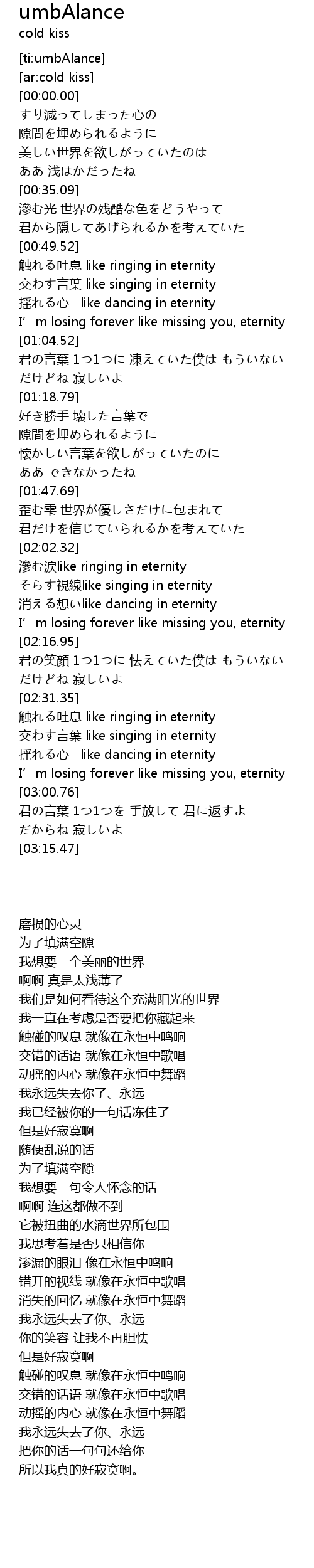 | [02:57.30] | I' m losing forever like missing you, eternity |